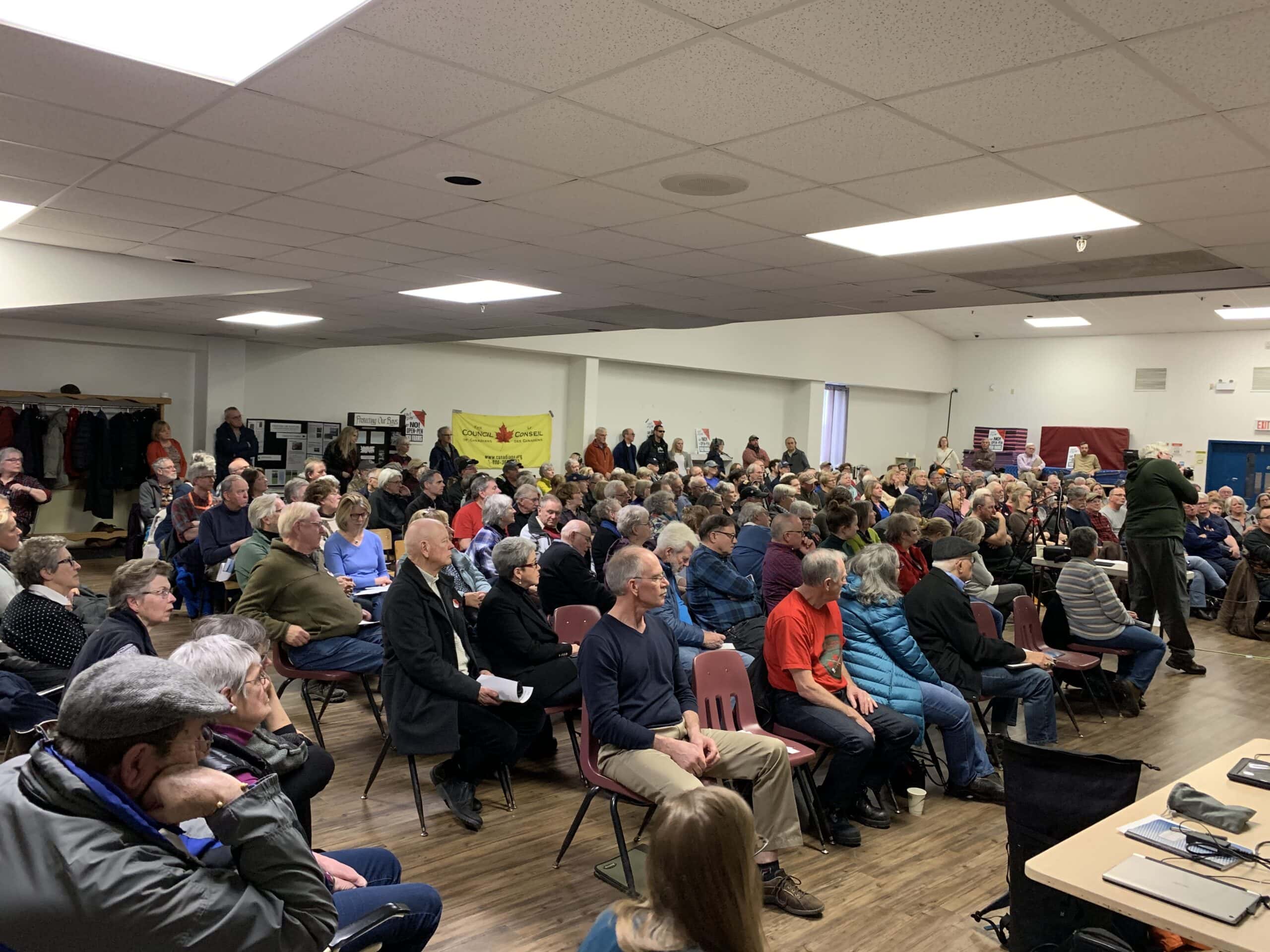 Next it was on to the St. Margaret’s Bay Arena where the Twin Bays Coalition had organized a panel discussion attended by over three hundred people. We heard from speakers representing lobster fisherman, tourism, inshore fishermen and a Nova Scotian land-based closed containment salmon farm company. Nova Scotia and BC are at opposite ends of the country, but the similarities between our coastal communities was striking. We value our rural communities, ocean-going livelihoods, and beautiful shorelines. Fierce love of place surfaced at the threat posed by open net-pen fish farming.